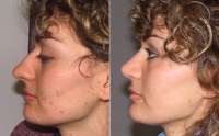 The preoperative and postoperative profiles were compared to show the facial results with a more gentle and straight profile, though respecting the proportions between the nose, mouth and chin.