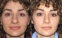 Frontal view before and after the intervention. The face is more harmonic and sweet in its lines and proportions, after a simple and noninvasive rhinoplasty.