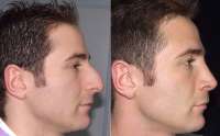 Da queste immagini poste a confronto si evidenzia la regolarizzazione del profilo dell'intero volto. Si può notare come la punta del naso rispecchi la forma del mento e da un profilo curvo si sia passati ad un profilo lineare che dona armonia al viso. L'intervento di rinoplastica non ha risolto solo un problema estetico, ma ha consentito di risolvere tutti i problemi di carattere funzionale del naso.