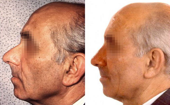 La foto in basso mostra il risultato estetico dell'intervento. L'intervento di rinoplastica ha modificato sensibilmente le dimensioni del naso pur rispettando le caratteristiche del viso e della personalità del paziente. Si può infatti notare come il profilo e l'intero volto del paziente risultino molto più naturali ed armoniosi dopo l'intervento di rinoplastica rispetto alla condizione originaria. Il naso da una condizione di anormalità è passato ad una condizione e forma normale dopo l'intervento di rinoplastica.