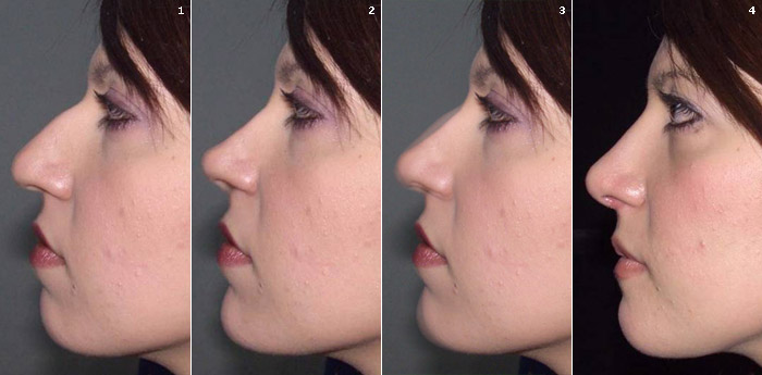 - La quarta immagine mostra il risultato finale dell'intervento di profiloplastica.
